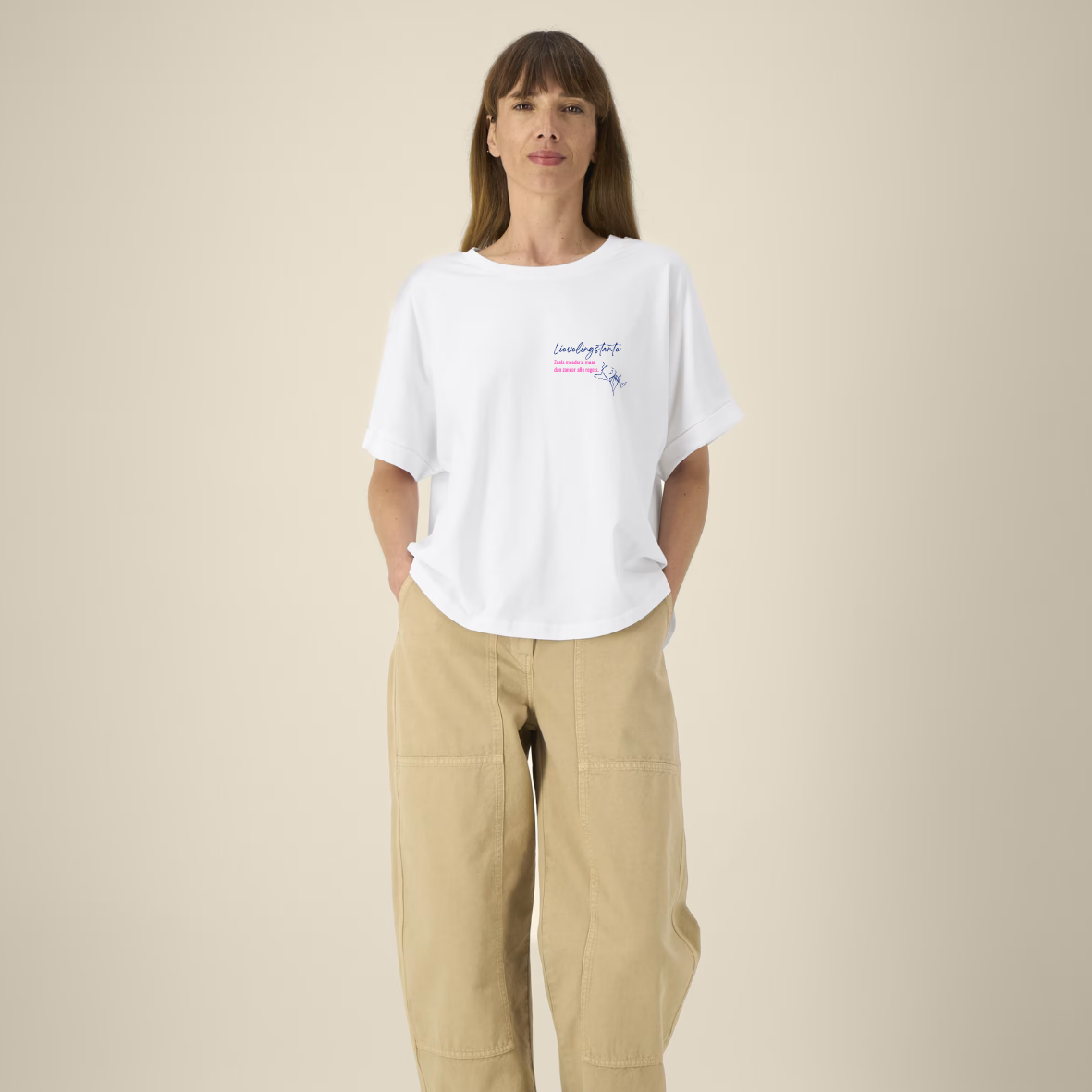 - Deze premium duurzame T-shirt is gemaakt van 100% organisch én GOTS-gecertificeerd katoen. (Ik vind dat mega belangrijk, je weet wel, voor de planeet.)